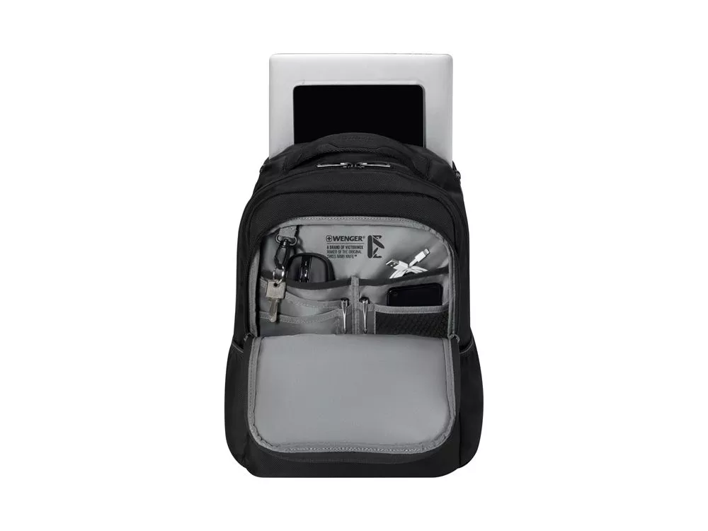 Неотразимое сочетание дизайнерских решений и надежной функциональности -WENGER XE Resist. Изготовленный из переработанных ПЭТ-бутылок и оснащенный водонепроницаемым отделением для защиты ваших устройств, он является очевидным выбором для практичной и удобной работы. Аккуратно храните свои деловые и личные вещи в течение дня. Благодаря специальному ремню для крепления к телескопической ручке чемодана, мягким плечевым ремням и ручке для переноски вы сможете носить его с собой в любое время и в любом месте. Ключевые преимущества: - Основная внешняя ткань изготовлена из переработанных ПЭТ-бутылок - Отделение для ноутбука с мягкой подкладкой - Специальный карман для планшета - Водостойкое заднее отделение - Просторное основное отделение - Органайзер для предметов первой необходимости - Боковые карманы Размеры рюкзака: 30 x 44 x 20 см Максимальный размер ноутбука: 37 x 25,5 x 1,5 см. Вес рюкзака: 0,8 кг Объем рюкзака: 23 л