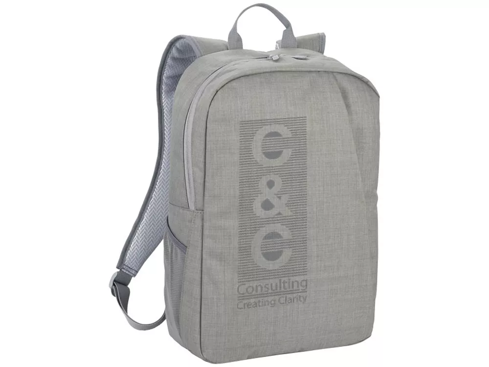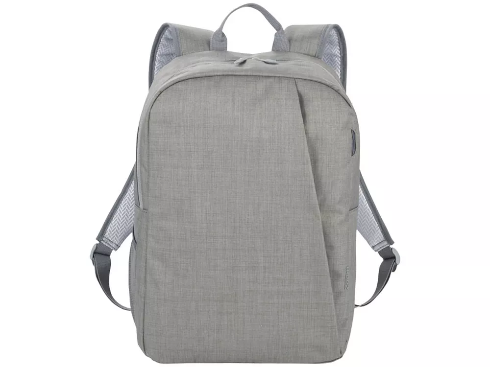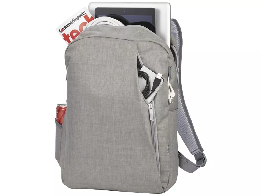 Рюкзак Zip для ноутбука 15. Гладкая ткань с серо/серебряными акцентами. Подкладка с лого Zoom® и отверстие для шнура. Основное отделение с карманом для ноутбука до 15,6. Карман из сетки и два дополнительных кармана для повербанка или телефона. Уплотненная спинка и шлейки, стропа для крепления к чемодану. Брендинг Zoom® и акценты. Полиэстер 210D. Термотрансфер (1 цвет (цветные изделия)) на данный товар осуществляется бесплатно. Оплачивается только настройка оборудования в размере 9200 рублей на весь тираж.
