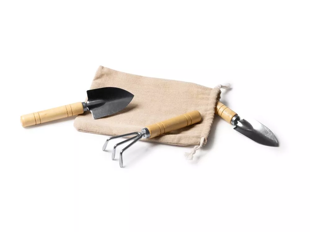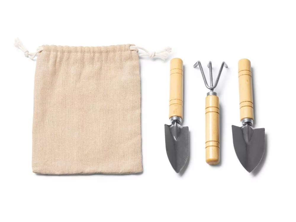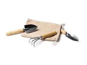 Садовый набор из 3 аксессуаров из нержавеющей стали и бамбуковая ручка. Включает большую и малую лопатки и грабли. В комплект входит хлопковый чехол. Презентация в дизайнерской эко-коробке.