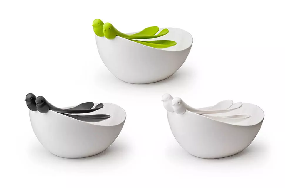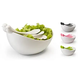Необычная и стильная салатница с сервировочными ложками Sparrow приближает Вас к природе. В ней так и хочется приготовить аппетитный, полезный и свежий салат! Каждая пара птичек в природе поддерживает друг друга в постройке своего гнездышка! Так и птички, которые входят в набор Sparrow, выполняют роль вилки и ложки, тем самым помогая Вам в приготовлении любимого салата! Основные характеристики Sparrow: