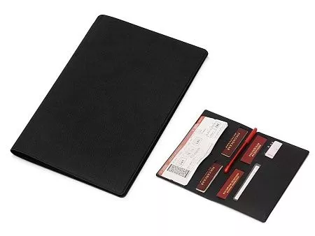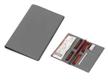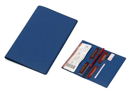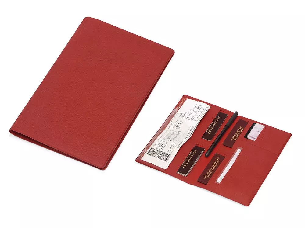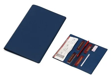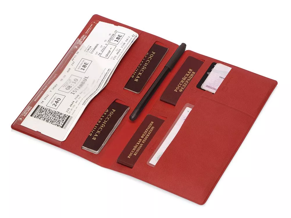 Вместительный и стильный органайзер для документов незаменим в путешествии. Выполнен из качественного материала. Экокожа приятна на ощупь и имеет различные расцветки. Внутри имеется восемь карманов, которые позволяют вместить документы для семьи из четырех человек. Документы аккуратно разложены и не утратят свою форму. Благодаря своим преимуществам органайзер для путешествий становится не только отменным подарком, но и эффективным рекламным средством. Тиснение (Блинт) на данный товар осуществляется бесплатно. Оплачивается только настройка оборудования в размере 5800 рублей на весь тираж.