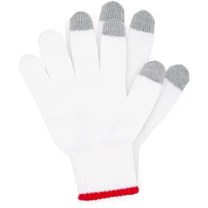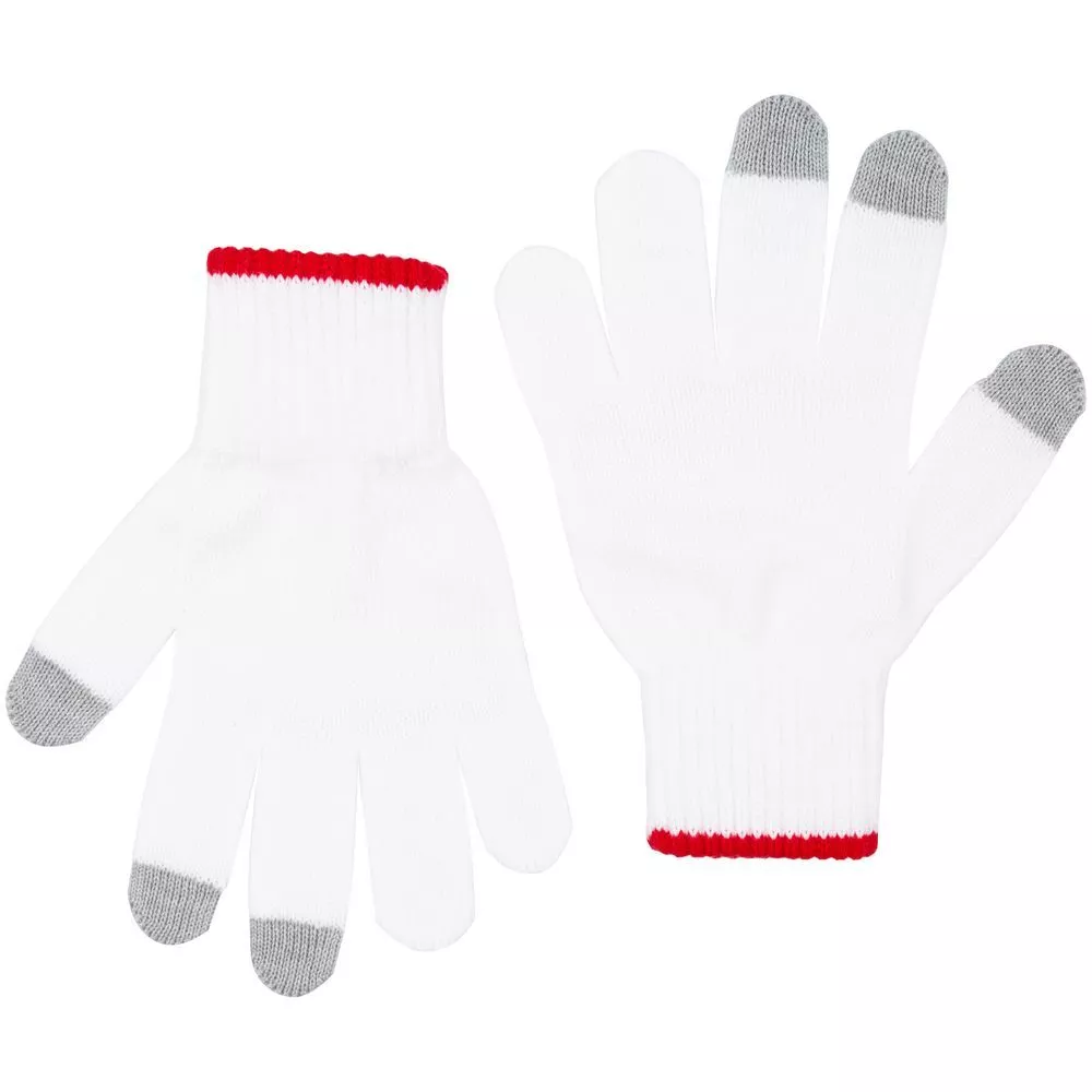 Перчатки c токопроводящей нитью на пальцах в фирменной цветовой гамме.