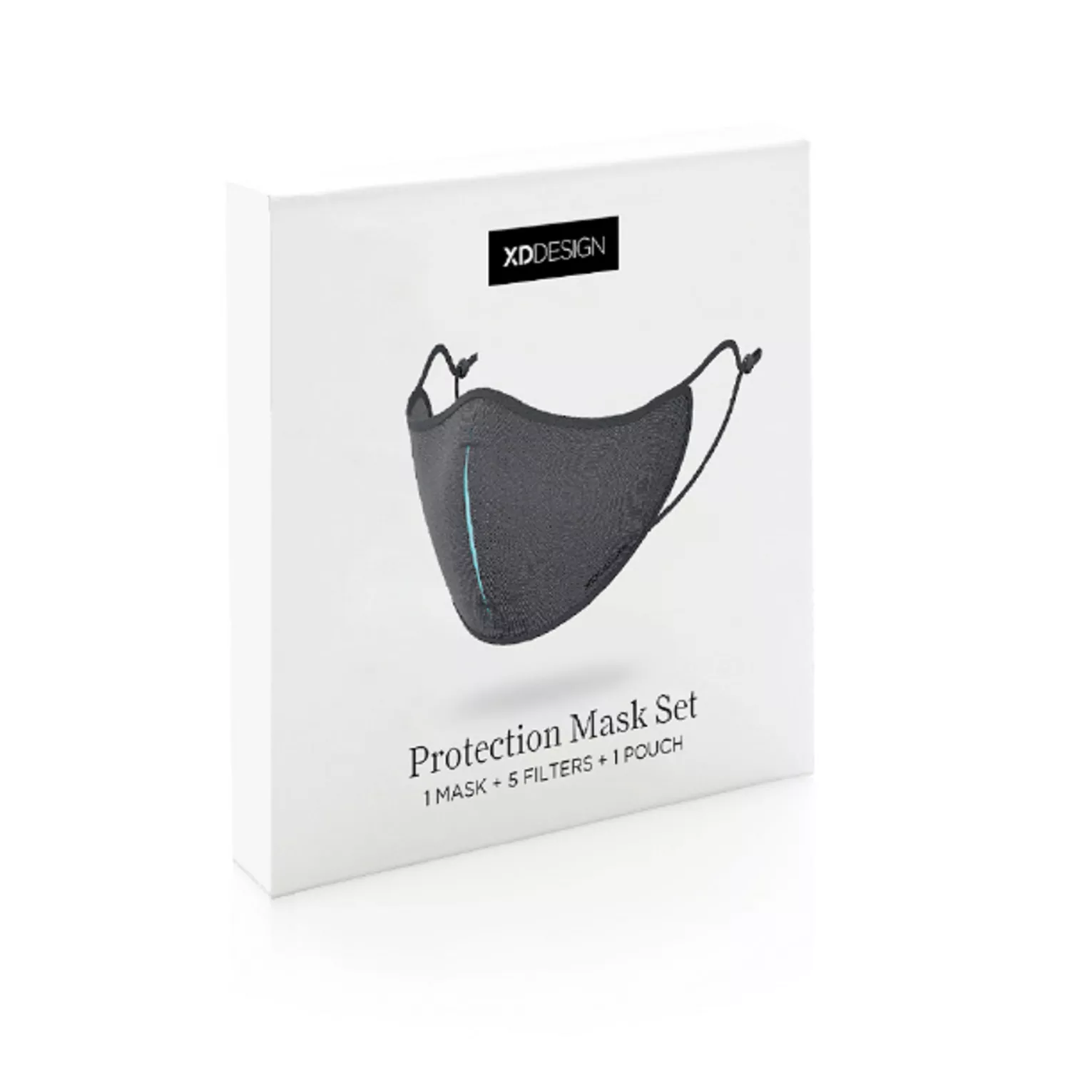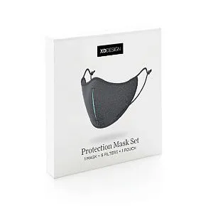 Комфортная защитная маска XD DESIGN для ежедневного использования. Легкая трехслойная конструкция. Внешняя ткань — полиэстер, обработанный по технологии ViralOff®, уничтожающей до 99% вирусов в течение 2 часов. Средний слой — уникальный фильтр Hyproof® с доказанной эффективностью фильтрации до 95%. Внутренний слой сделан из полиэстера. Трехмерная форма подбородка и гибкая переносица для комфортного использования. Состав сета: 1 многоразовая маска, которую можно стирать; 5 многоразовых фильтров; чехол для гигиеничного хранения маски и сменных фильтров. Не относится к товарам медицинского назначения (согласно Постановлению EU / 2017/745 о хирургических масках) и средствам индивидуальной защиты (согласно Постановлению EU / 2016/425 о фильтрующих масках типа FFP2). Зарегистрированный дизайн®