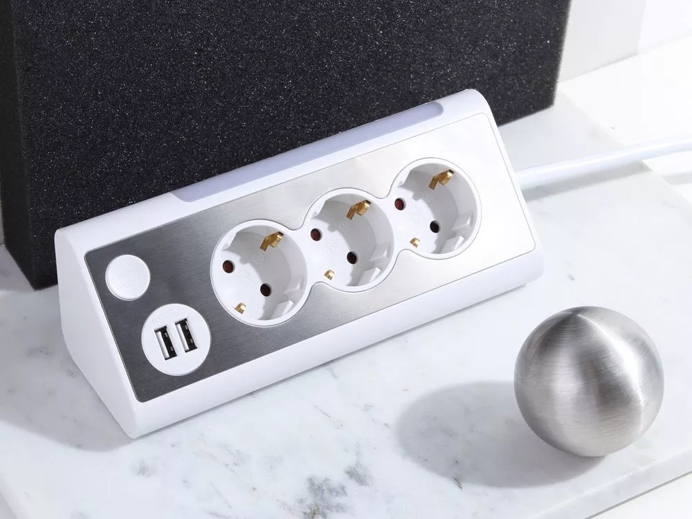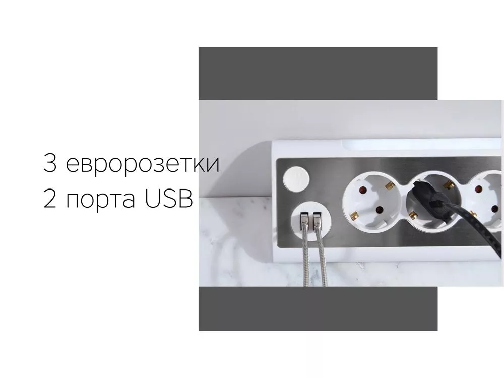 Сетевой фильтр Rombica NEO TRINITY - White * Три силовые штепсельные розетки. * Два USB порта. * Встроенный LED светильник. Вход- Евровилка Выходы- USB 5 В / 2.1 А, 2 шт. Евровилка 220 В / 16 А, 3 шт. Максимальная мощность, Вт3500 Длина шнура 1.5 м Тампопечать (1 цвет (белые изделия)) на данный товар осуществляется бесплатно. Оплачивается только настройка оборудования в размере 2300 рублей на весь тираж.