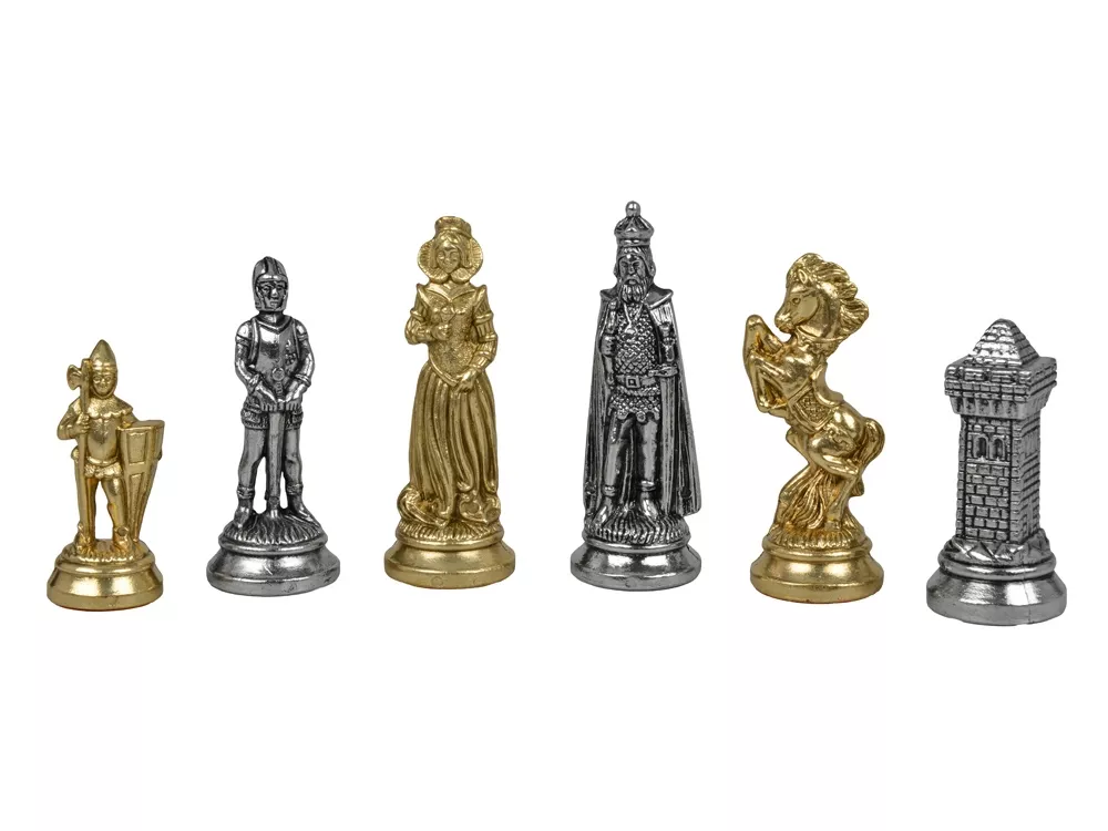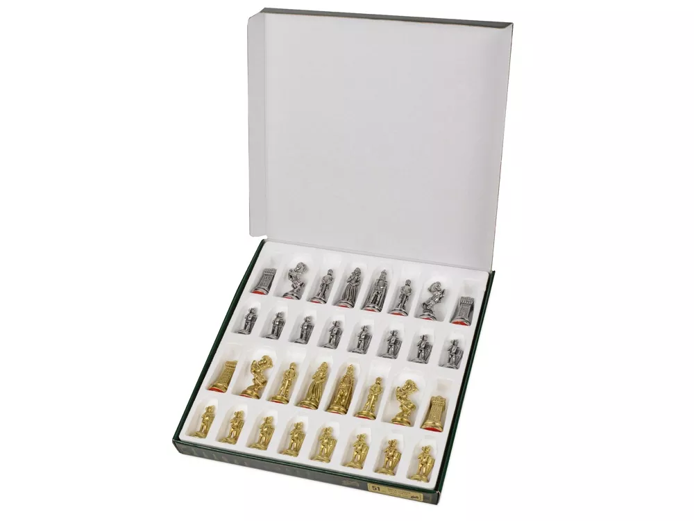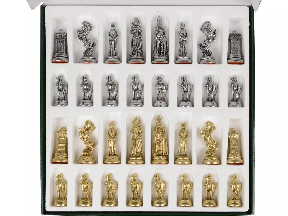 Шахматы - это настольная интеллектуальная игра, которая насчитывает не менее полутора тысяч лет. Можно сказать, что она сочетает в себе элементы искусства, науки и спорта. Шахматы Карл IV изготовлены в средневековом стиле, где величественные фигуры скрасят вечер в приятной компании. За шахматной игрой и долгими размышлениями можно параллельно провести полезные деловые переговоры. Шахматы - это идеальный подарок для бизнесмена, предпринимателя, руководителя и любого человека, который привык принимать верные решения. Фигурки выполнены в стилистике времен и изготовлены из цинкового сплава замак с посеребрением и позолочением. Шахматная доска представляет собой фрагмент цельного каучукового дерева. Набор упакован в две картонные коробки. На оборотной стороне шахматной доски имеется бархатное покрытие и углубления, в которые можно складывать фигуры. Окунитесь в старинную эпоху Карла IV вместе с нашим эксклюзивным подарком. * Мелкие дефекты на шахматной доске могут быть обусловлены тем, что все доски изготавливаются вручную.