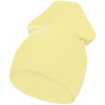 Двухслойная шапка-бини тонкой вязки, которую можно носить как с подворотом, так и без.
