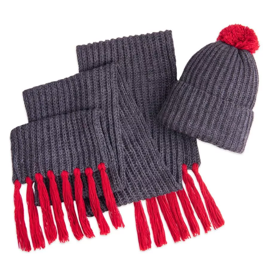 Мягкий, пушистый и уютный комплект из шарфа и шапки поможет согреться вам в холодное время года. Стильный меланжевый темно-серый цвет в средневековой Франции означал огромную власть. В те времена вся знать в основном одевалась в графитовые тона. Недаром, родилось выражение «серый кардинал». Почувствуйте магическое влияние серого цвета в сочетании с яркой отделкой!Цвет помпона и кисточек близкий к Pantone 201C Срок сборки комплектующими (помпоном и кисточками) - по запросу.