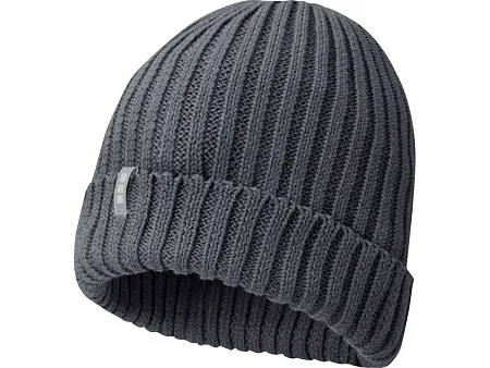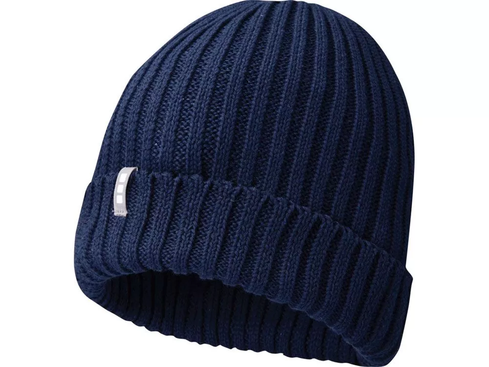 Экологически безопасный рекламный головной убор. Однослойная шапка с двойным отворотом. Фирменная этикетка в виде петли. 2x2 rib knit100% Органический хлопок, 7 gauge.