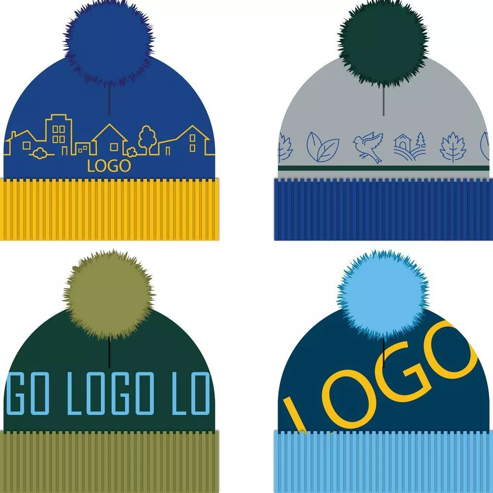 Шапка с вывязанным логотипом и индивидуальным рисунком в фирменной цветовой гамме.