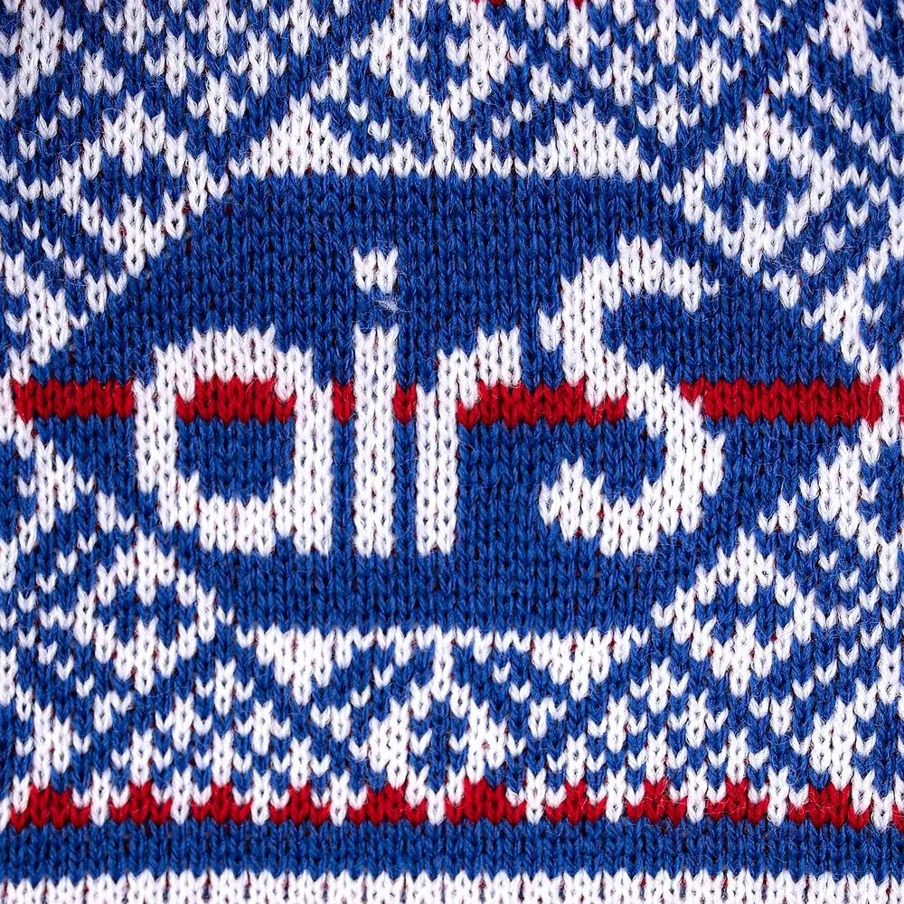 Шапка с вывязанным логотипом и индивидуальным рисунком в фирменной цветовой гамме.