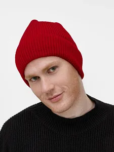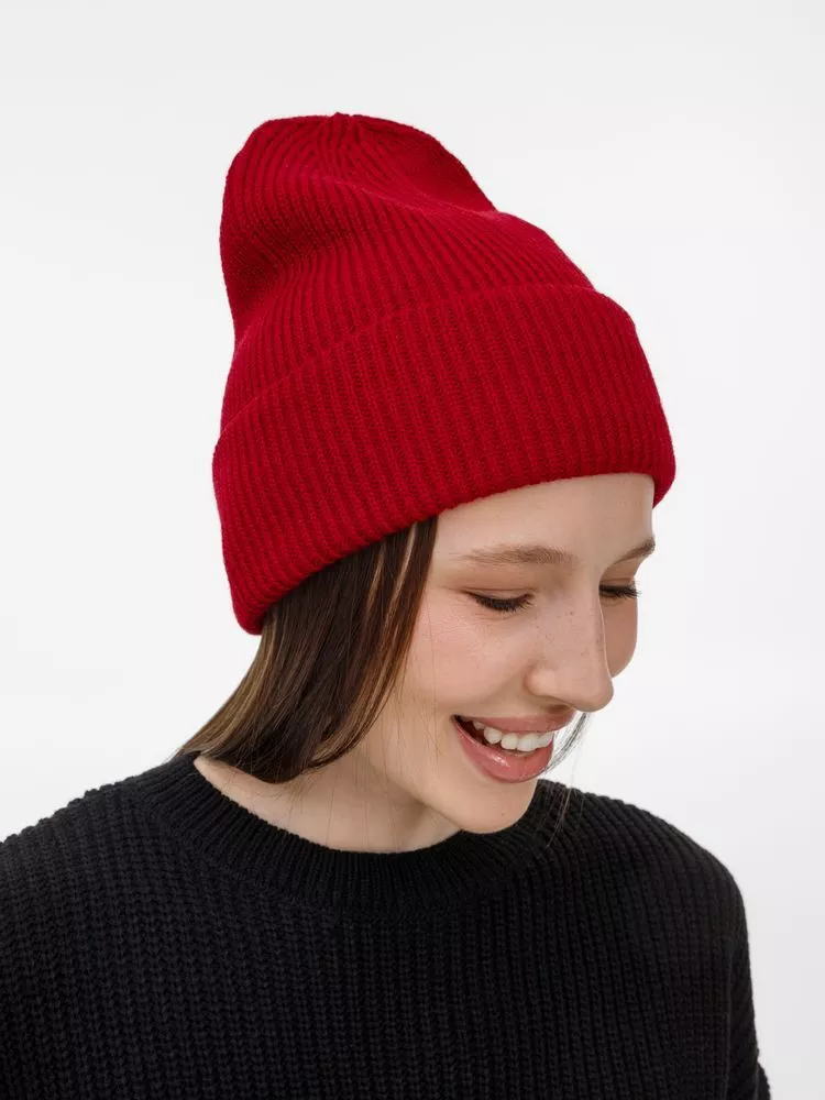 Однослойная шапка фактурной вязки с отворотом.