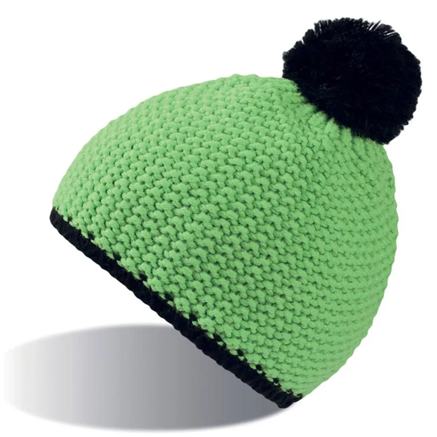 Основной цвет, близкий к Pantone 376 C; цвет отделки, близкий к Pantone Black 6 C Яркая и привлекающая к себе внимание шапка Peak ажурной вязки с контрастной отделкой понизу и помпоном из той же пряжи, которой связана и сама шапка. Мягкая, теплая и удобная, Вы не захотите с ней расставаться в холодное время года. Частичная флисовая подкладка защитит от ветра, а яркие цвета поднимут настроение.