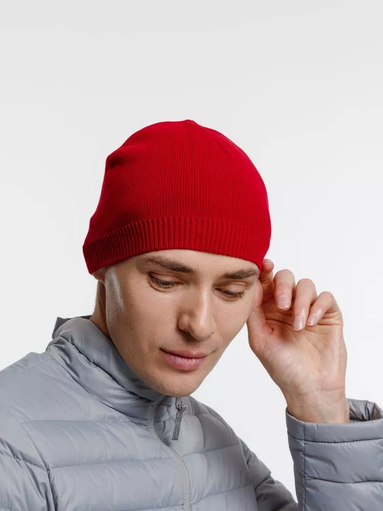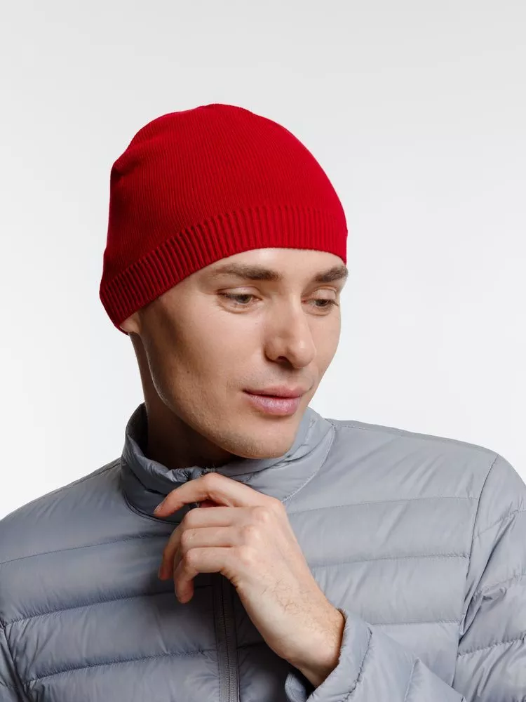 Однослойная шапка гладкой вязки.