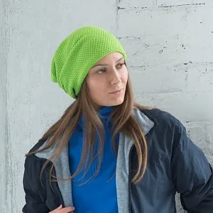 Цвет, близкий к Pantone 368 C Удлиненная легкая двухслойная шапка из мягкой пряжи средней вязки с рельефным рисунком, напоминающим медовые соты. Snobby идеально впишется в ваш повседневный гардероб, а наличие ярких неоновых цветов поможет поднять настроение и выделиться из толпы.