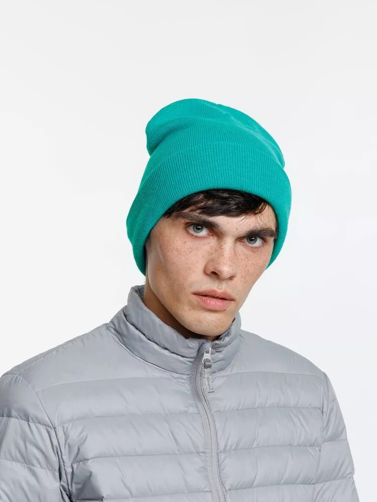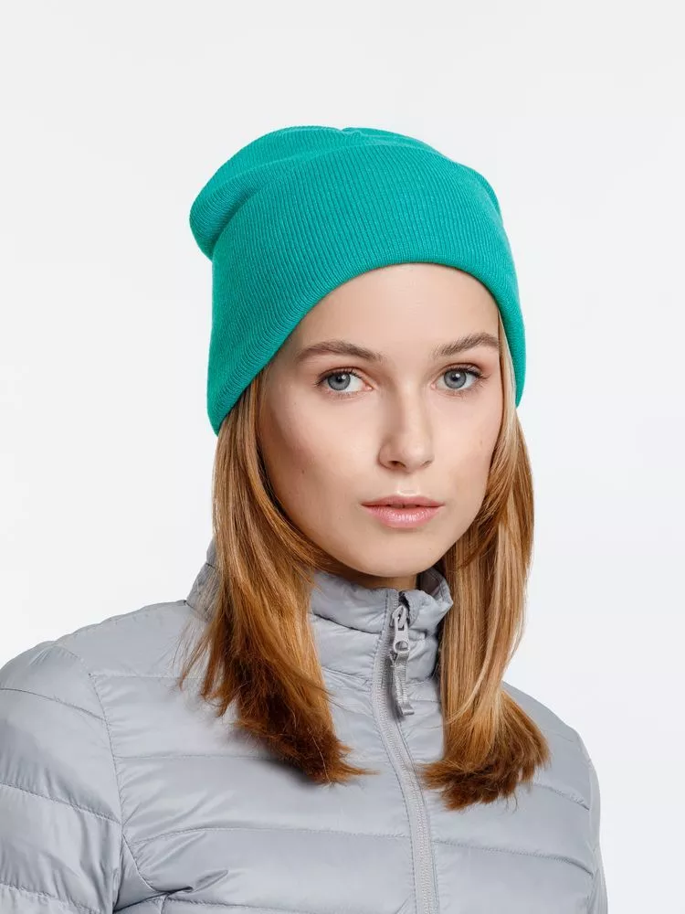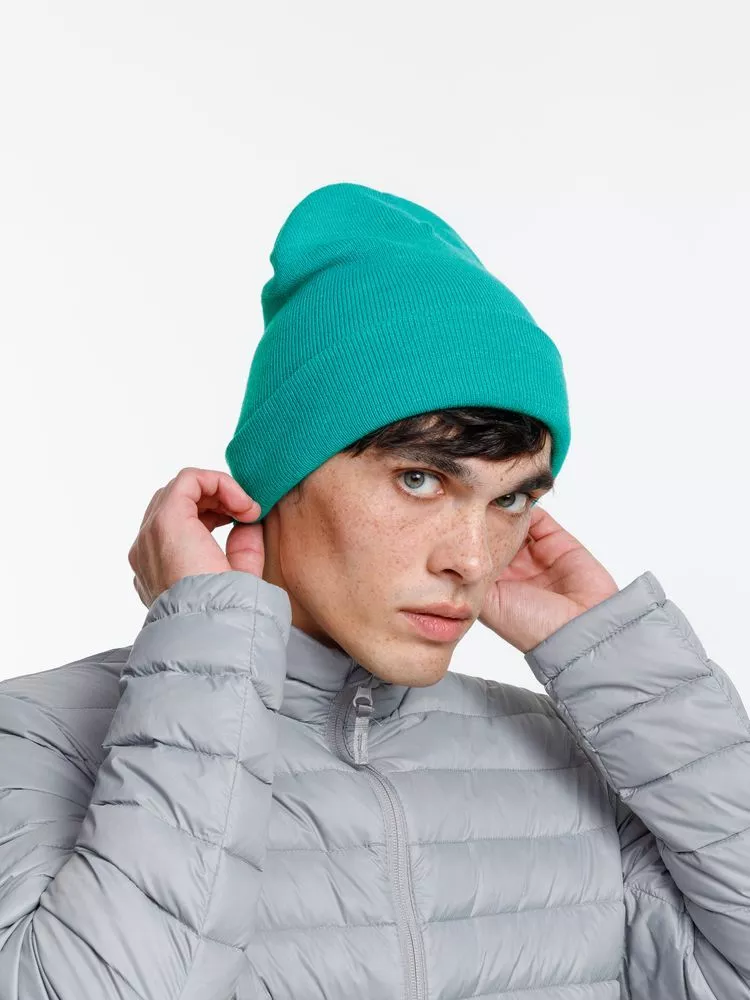 Двухслойная шапка из акриловой пряжи с регулируемым отворотом 7–10 см.