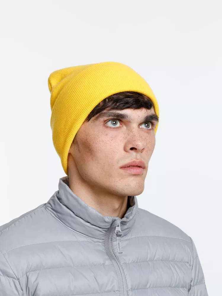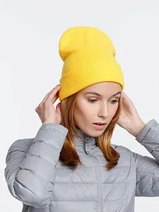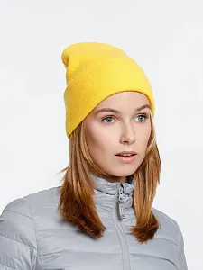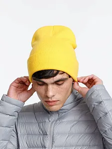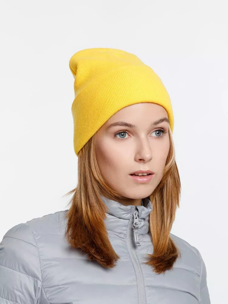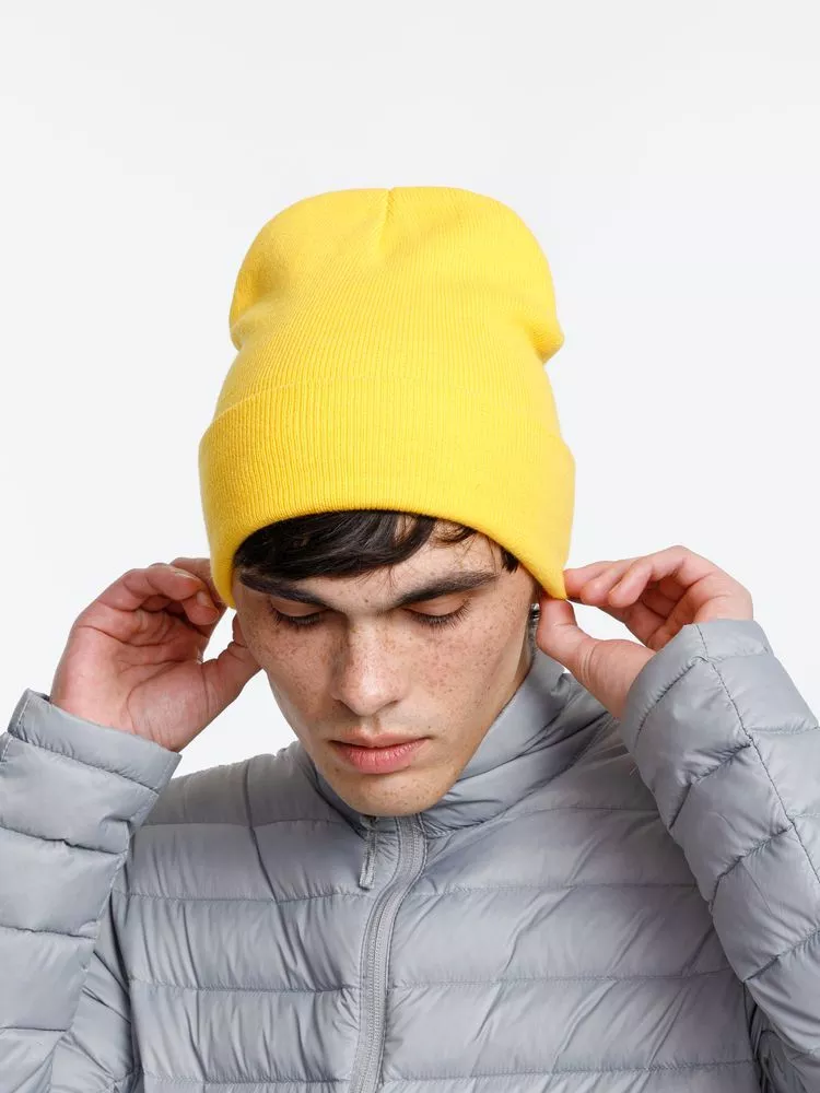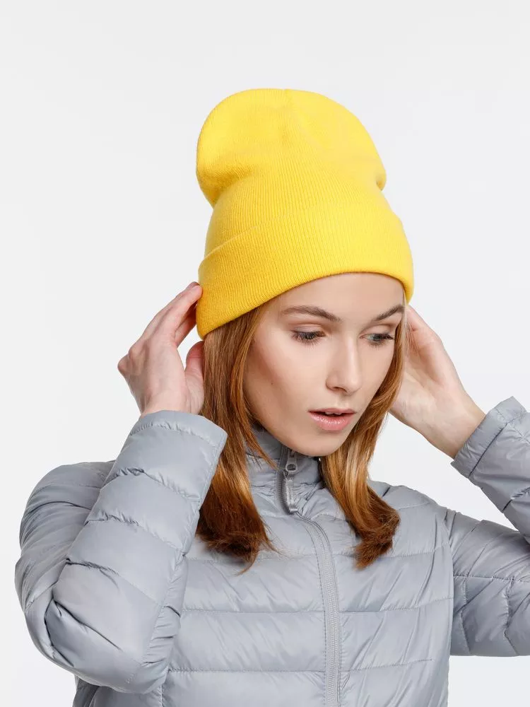 Двухслойная шапка из акриловой пряжи с регулируемым отворотом 7–10 см.