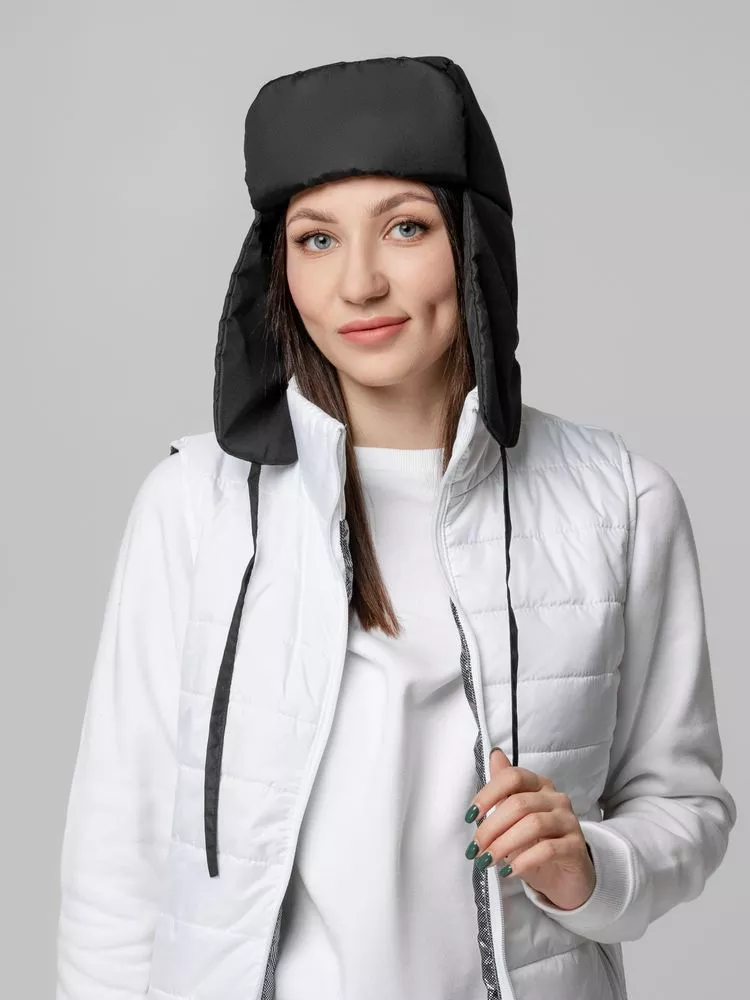 Теплая шапка-ушанка с наполнителем из синтепона и подкладкой из мягкого флиса.