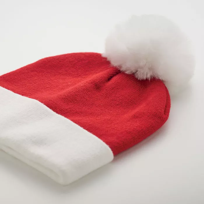 Рождественская вязаная шапка с манжетой и помпоном из акрила.