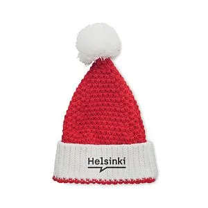 Рождественская вязаная шапочка с манжетой и помпоном из мягкого акрила.