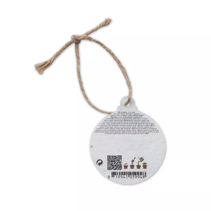 Мягкая бумага, содержащая цветочные семена в форме новогоднего шара на джутовой веревочке. После использования посадите частичку и наблюдайте, как она превращается в полевой цветок. Сделано в ЕС.