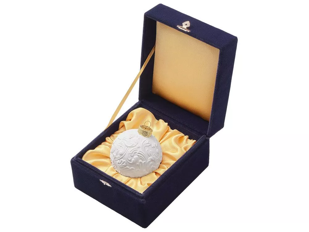 Фарфоровый шар с росписью в технике бисквит. Игрушка ручной работы. Матовая, бархатистая поверхность и пастельные тона создают утонченный образ старинного зимнего праздника. Это воплощение изящества и ностальгии. Игрушка упакована в изысканный подарочный футляр, обитый синим бархатом, что подчеркивает её ценность и делает готовым презентом для коллег и партнеров. Внимание! Данное изделие относится к категории повышенной хрупкости. Для обеспечения его целостности и безопасной транспортировки настоятельно рекомендуется использование обрешетки. Обрешеточная упаковка является обязательной при доставке, и компания Oasis не несёт ответственности за повреждения, возникшие в результате ненадлежащей упаковки или транспортировки без обрешетки.