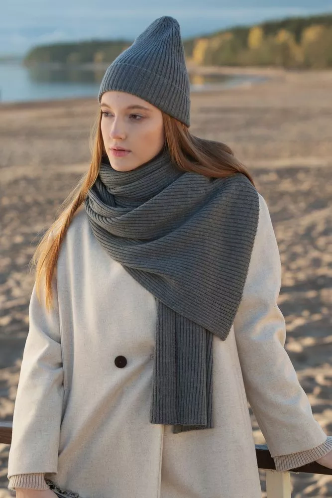 Шарф в рубчик Alpine из воздушной пряжи с высоким содержанием шерсти альпаки и мериноса позволит создать актуальный сдержанный образ в стиле smart casual.
