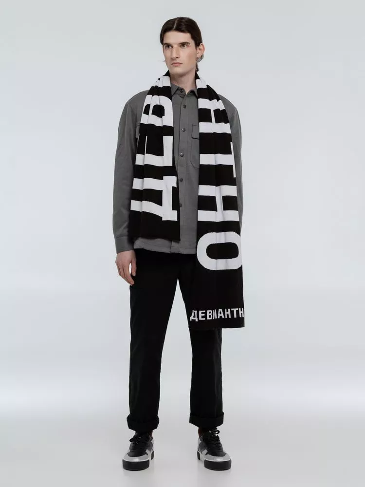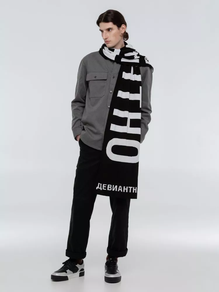 Шарф, который устанавливает свои правила! Ему девиантно общество, где принято носить однотонные аксессуары.Шарф с жаккардовым рисунком.