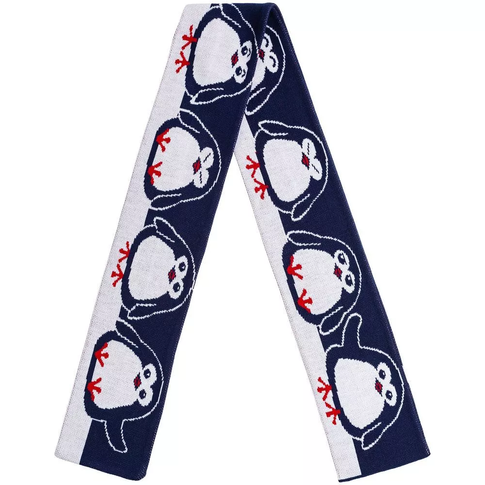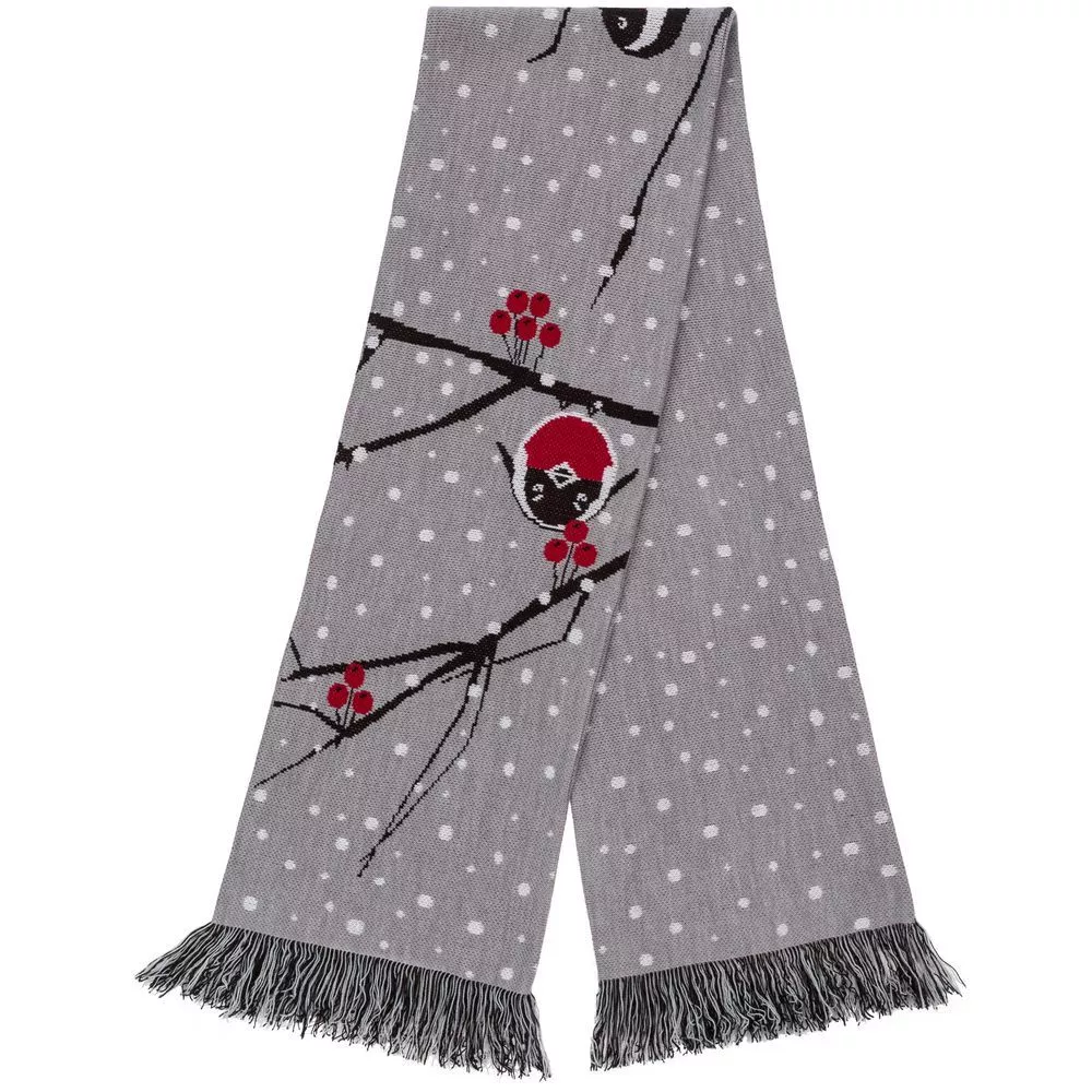 Шарф с вывязанным логотипом и индивидуальным рисунком в фирменной цветовой гамме.