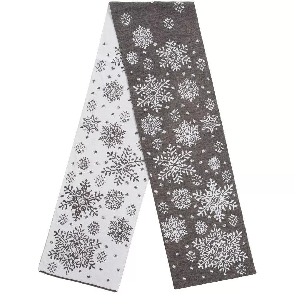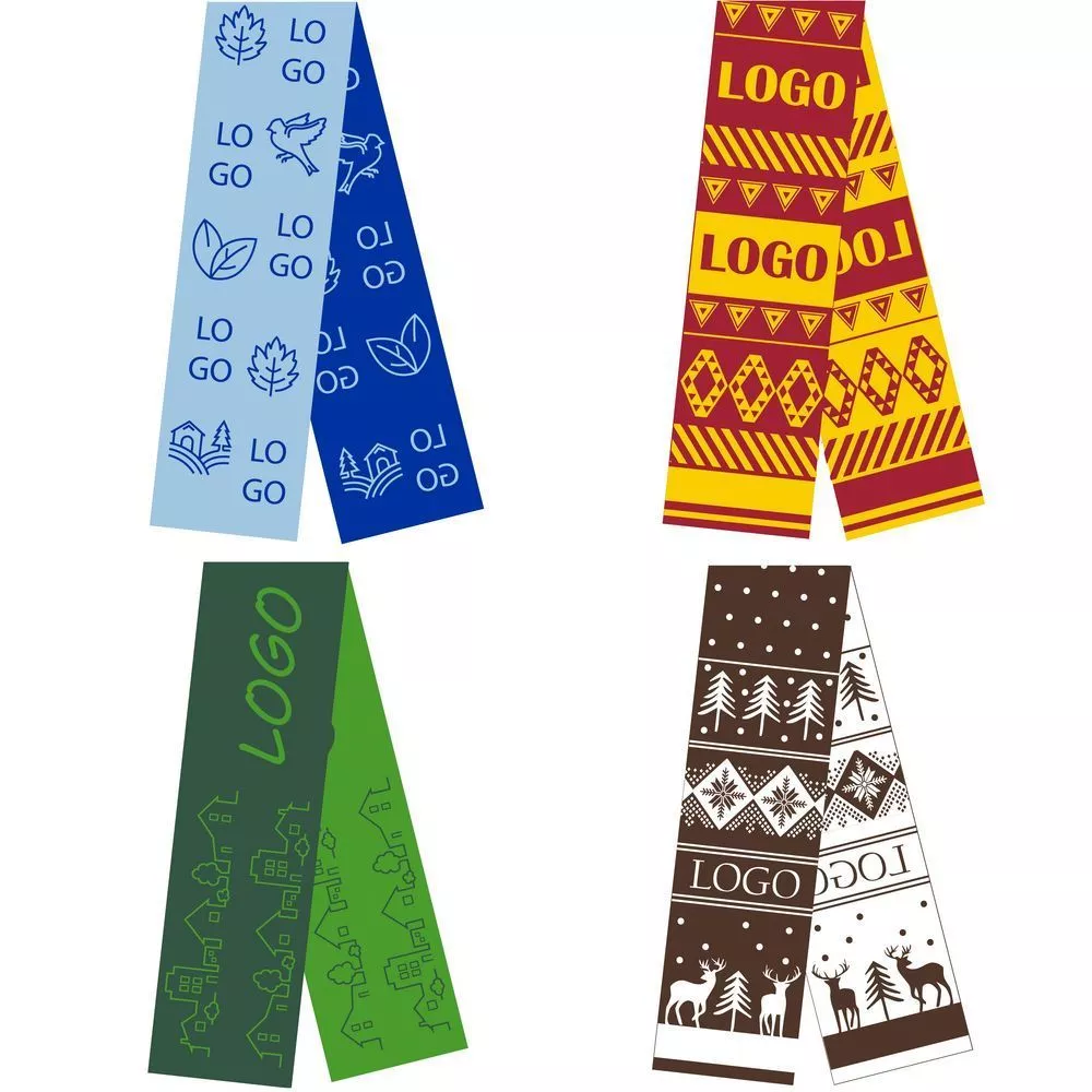 Шарф с вывязанным логотипом и индивидуальным рисунком в фирменной цветовой гамме.