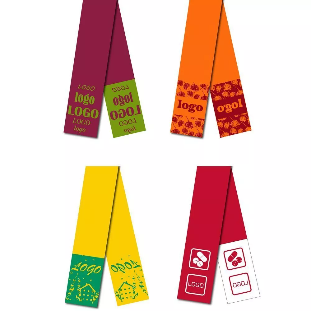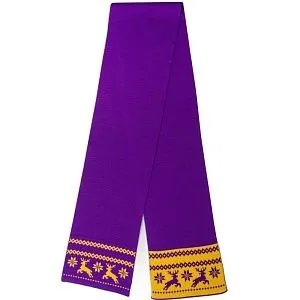 Шарф с вывязанным логотипом и/или индивидуальным рисунком в фирменной цветовой гамме.