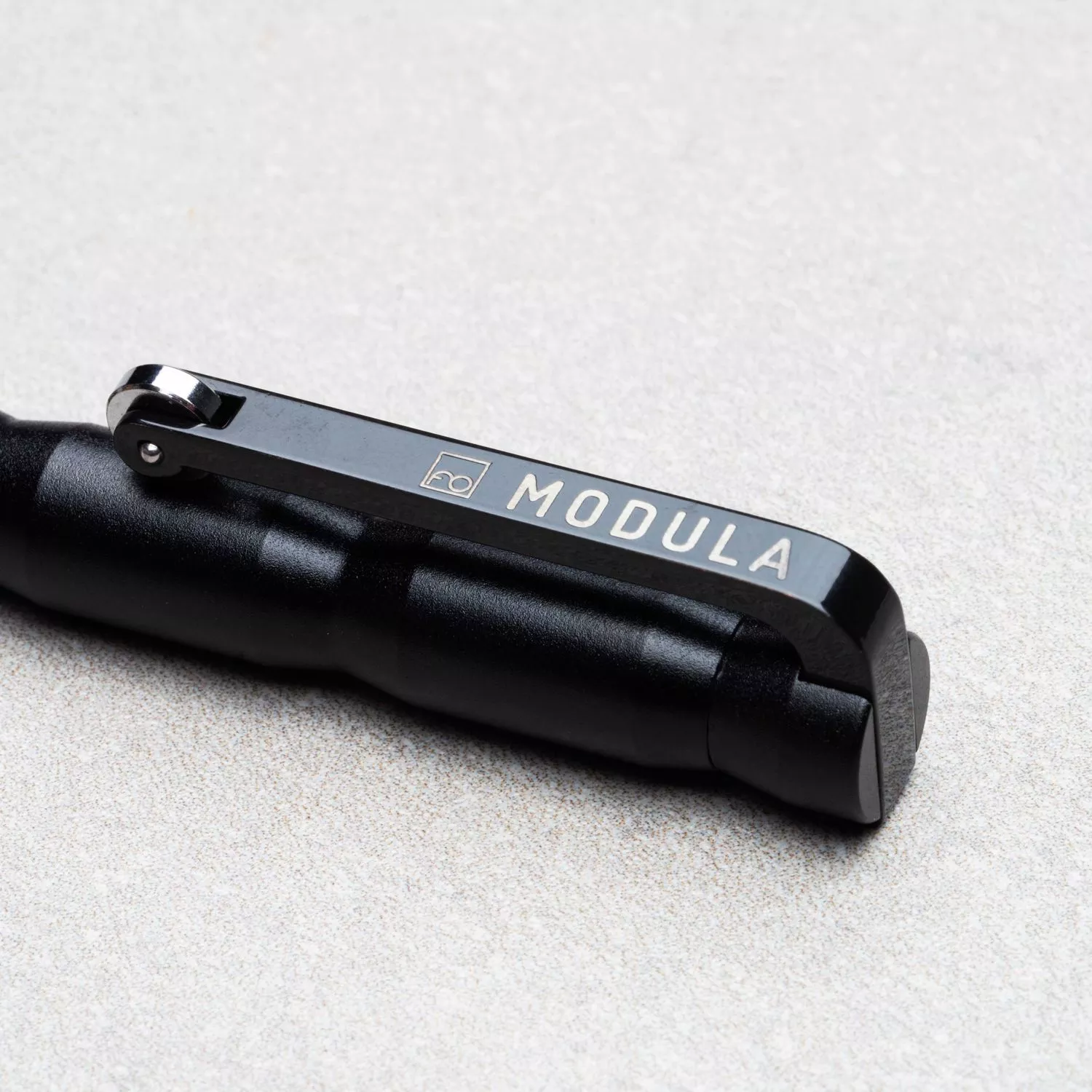 Ручка-трансформер из коллекции Pininfarina Modula черного цвета создана Pininfarina в сотрудничестве с итальянским дизайнером Луиджи Тренти. Получился совершенно необычный пишущий инструмент, сочетающий в себе шариковую ручку и карандаш. Корпус сделан из алюминия и имеет два независимых пишущих узла: шариковую ручку и карандаш со сменным наконечником из материала GrafeeX. GrafeeX - это запатентованный инновационный материал, полученный в результате спекания мелких частиц графита при высоких температурах. То есть он пишет, как обычный графитовый карандаш, но из-за высокой плотности материала крайне экономно расходуется, и его хватает очень надолго. Modula - это своеобразный конструктор, так как она может быть составлена по-разному, вплоть до укорачивания, вследствие того, что один из двух наконечников можно убрать. Оригинальный дизайн клипа. Длина ручки 15 см, диаметр 0,6 см, вес 22 гр. Упакована в черную коробку из дизайнерского многослойного картона 15х3,5х2 см. Вес в упаковке 62 гр. Сделана в Италии.