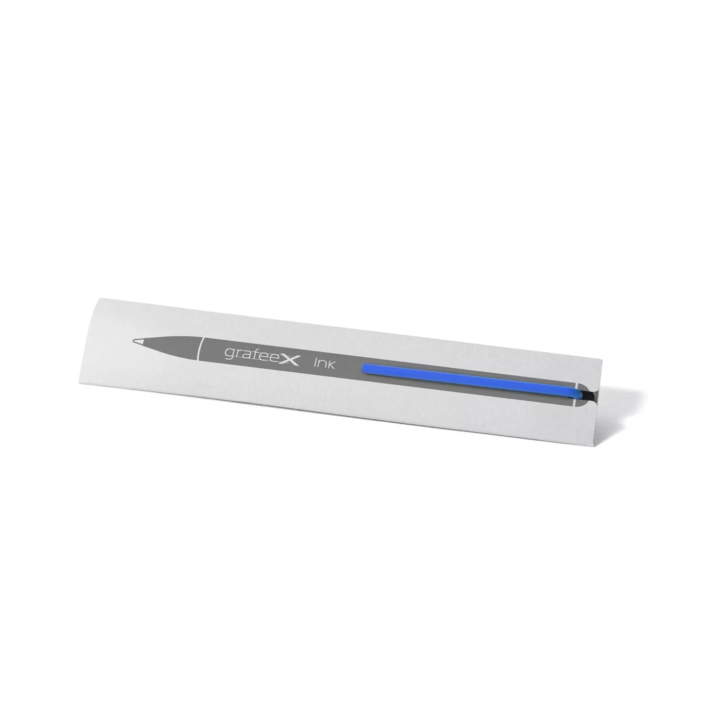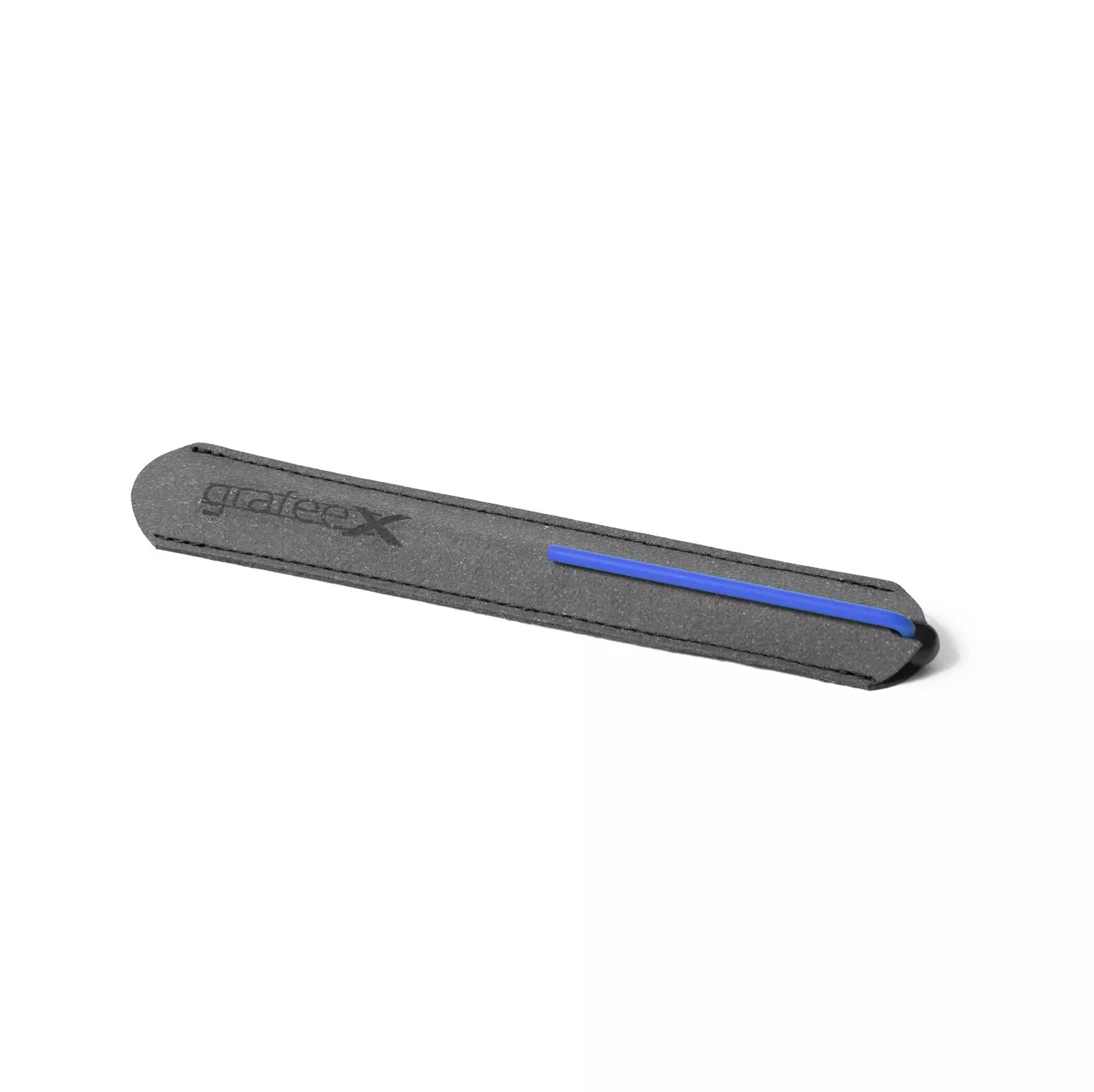 Шариковая ручка с цельным алюминиевым матовым корпусом черного цвета и ярко-синим клипом. Дизайн ручки такой же, как и у инновационного карандаша GrafeeX.В ручке используется шариковый стержень CROSS® 8513, который выдвигается с помощью поворотного механизма. Ручка вкладывается в элегантный темно-серый чехол с серой прострочкой, сшитый вручную из рециклированной кожи.