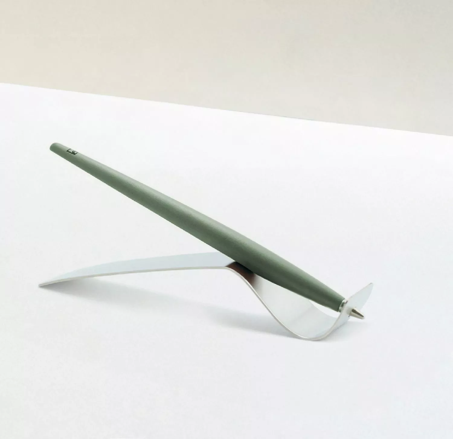 Новая ручка коллекции A modern classic модели Pininfarina PIUMA - шариковая ручка динамической формы в виде гусиного пера сделана в память Кодекса о полете птиц Леонардо да Винчи, целью которого было понять тайну полета и который хранится сейчас в Королевской библиотеке Турина. PIUMA - ручка динамической формы в виде гусиного пера, полностью сделана из дерева клена, тонированного в цвет зеленого листа шалфея, и весит всего 7 гр при длине 15,5 см. Piuma находится в постоянном равновесии со своим центром тяжести благодаря серому матовому стальному пьедесталу и служит артобъектом на вашем письменном столе. В ручке используется шариковый стержень Schmidt ® S635 (D1) с синей пастой. Набор упакован в белую подарочную коробку размером 215х100х30 мм.