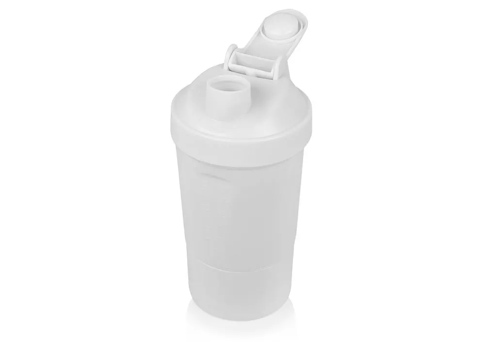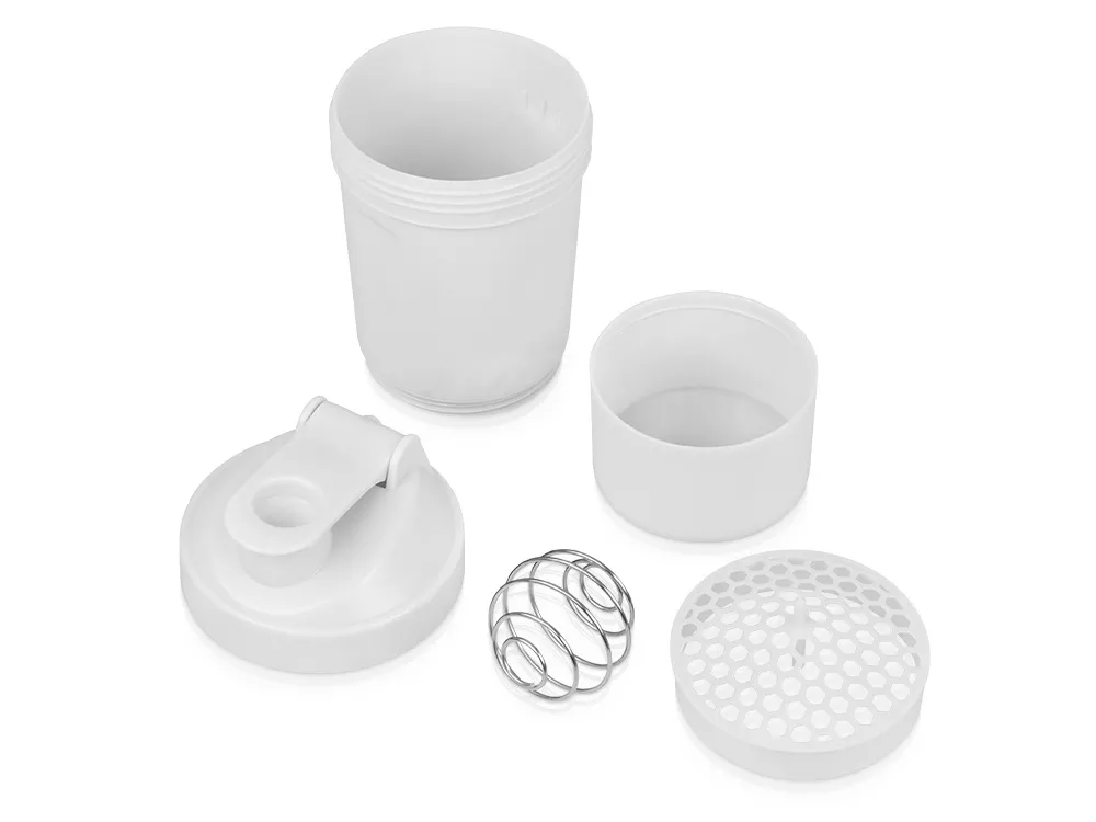 Шейкер для спортивного питания - это один из необходимых аксессуаров для спортсменов и людей, ведущих активный образ жизни. В нем можно приготовить протеиновый коктейль или фруктовый напиток. Шейкер классической формы, он удобно лежит в руке, к донышку прикручивается емкость для смешивания (таблетница), в которой можно хранить спортивные добавки: протеиновый порошок, витамины и другие концентраты. Внутри колбы имеется пластиковая сетка, чтобы процеживать спортивный напиток, а также металлический размешиватель, который растворяет порошок в напитке без комочков. Объем - 400мл. Шейкер изготовлен из пищевого пластика, он герметичен и легко моется. Шейкер имеет приятное на ощупь матовое покрытие, но подверженное незначительным дефектам (царапинам). Шейкер с нанесением - это классный и полезный спортивный подарок для коллеги, руководителя и сотрудников компании.