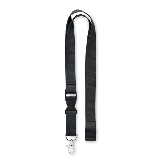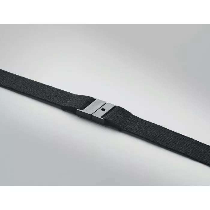 Хлопковый шнурок с металлическим крючком, съемной пряжкой и предохранительным отрывом. Ширина 20 мм.