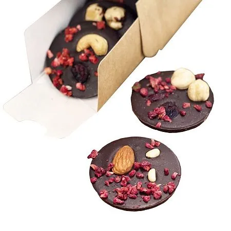 Медианты — это порционный шоколад круглой формы с орехами, ягодами или другими начинками. Тонкий слой хрустящего шоколада в сочетании с начинкой представляет собой гармоничный десерт, который можно подать сразу гостям к чаю или кофе.