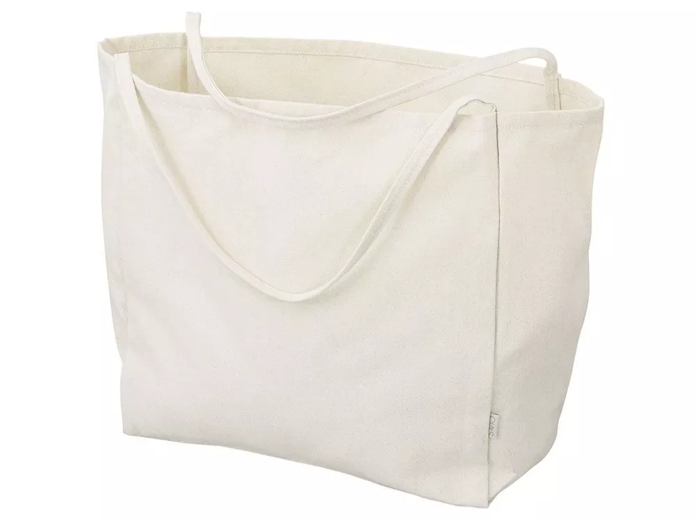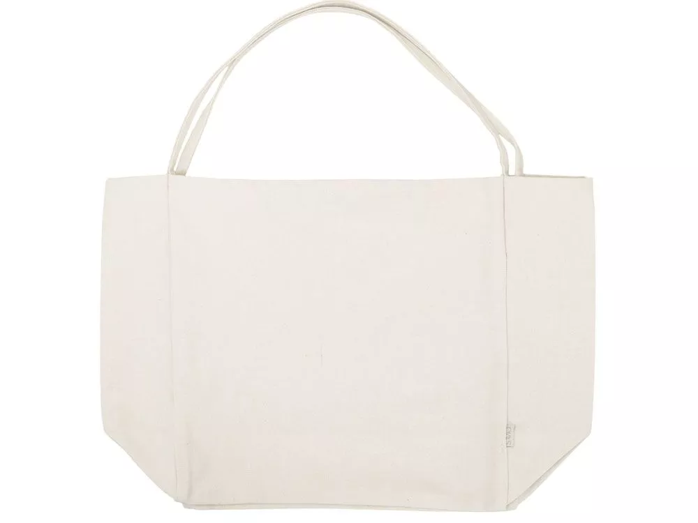 Сумка-шоппер из переработанного хлопка очень вместительна благодаря донной складке. Удобные широко расположенные лямки создают дополнительный комфорт при ношении.