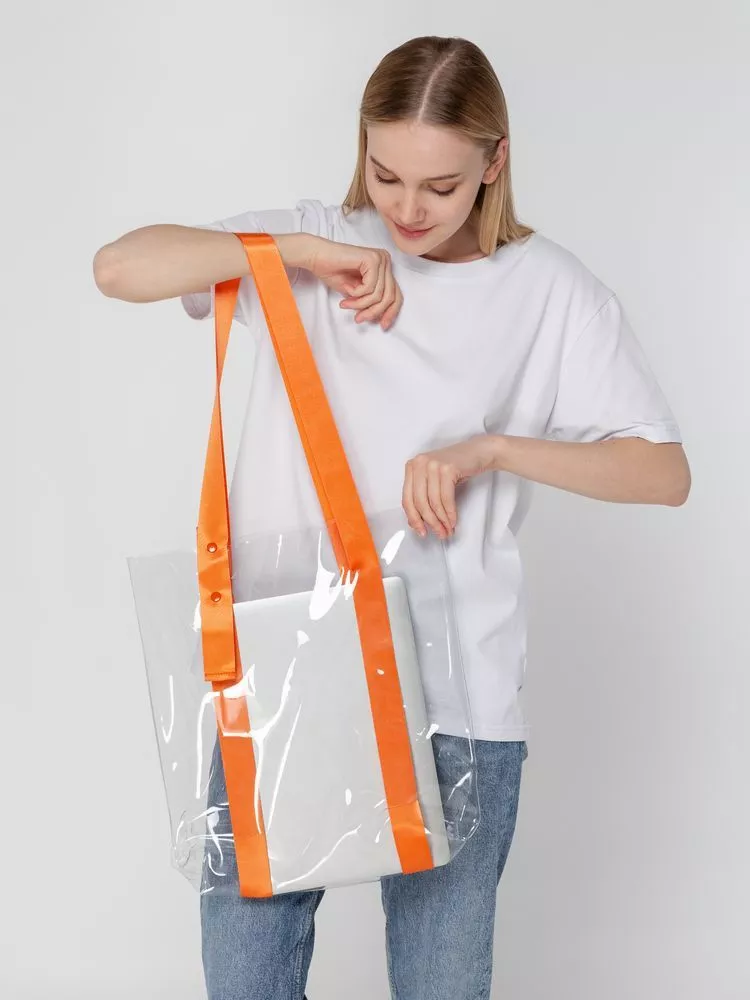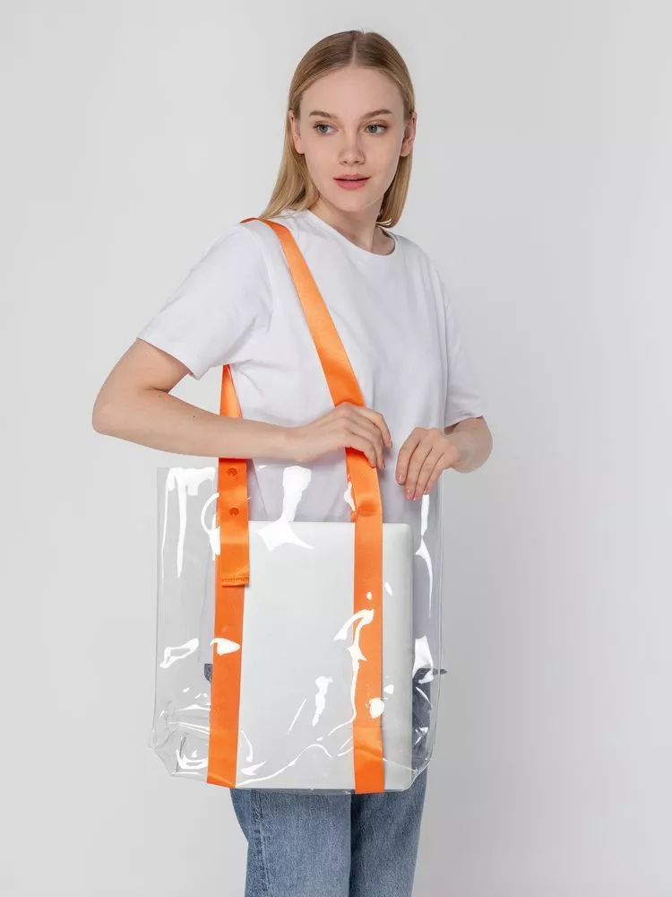 Прозрачные сумки никогда не выйдут из моды. А цветные ручки легко впишутся в брендбук или — дополненные подходящим нанесением — точно передадут настроение, которое хотелось бы транслировать.