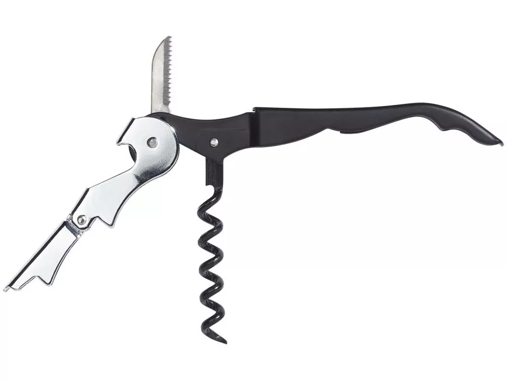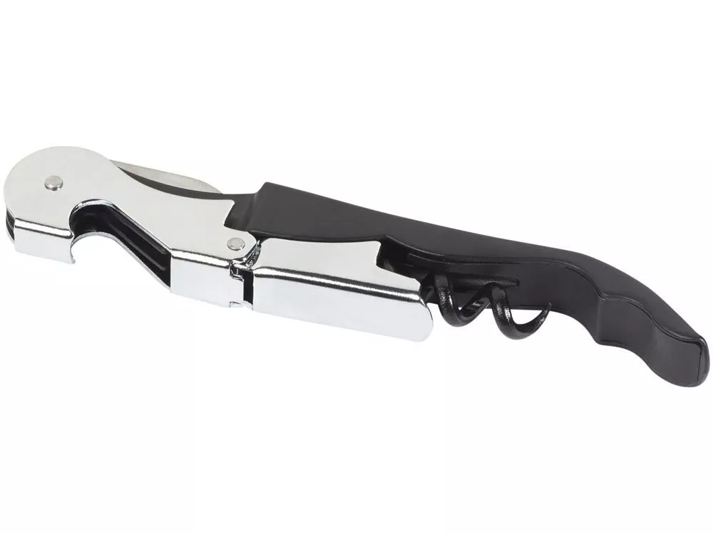 Штопор с буравчиком, открывалкой для бутылок и ножом для срезания фольги. Нержавеющая сталь. Гравировка (оптоволоконный лазер) (Без чернения) на данный товар осуществляется бесплатно. Оплачивается только настройка оборудования в размере 950 рублей на весь тираж.