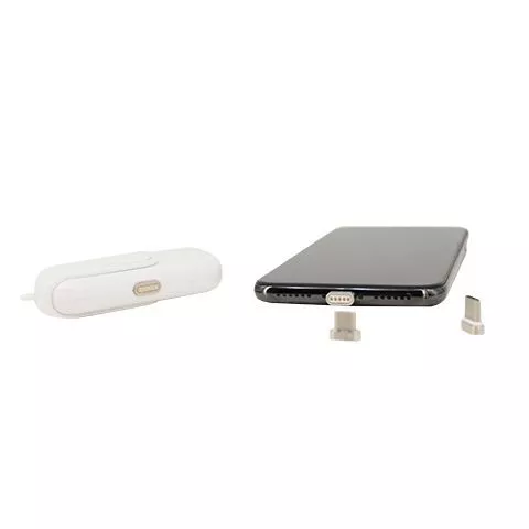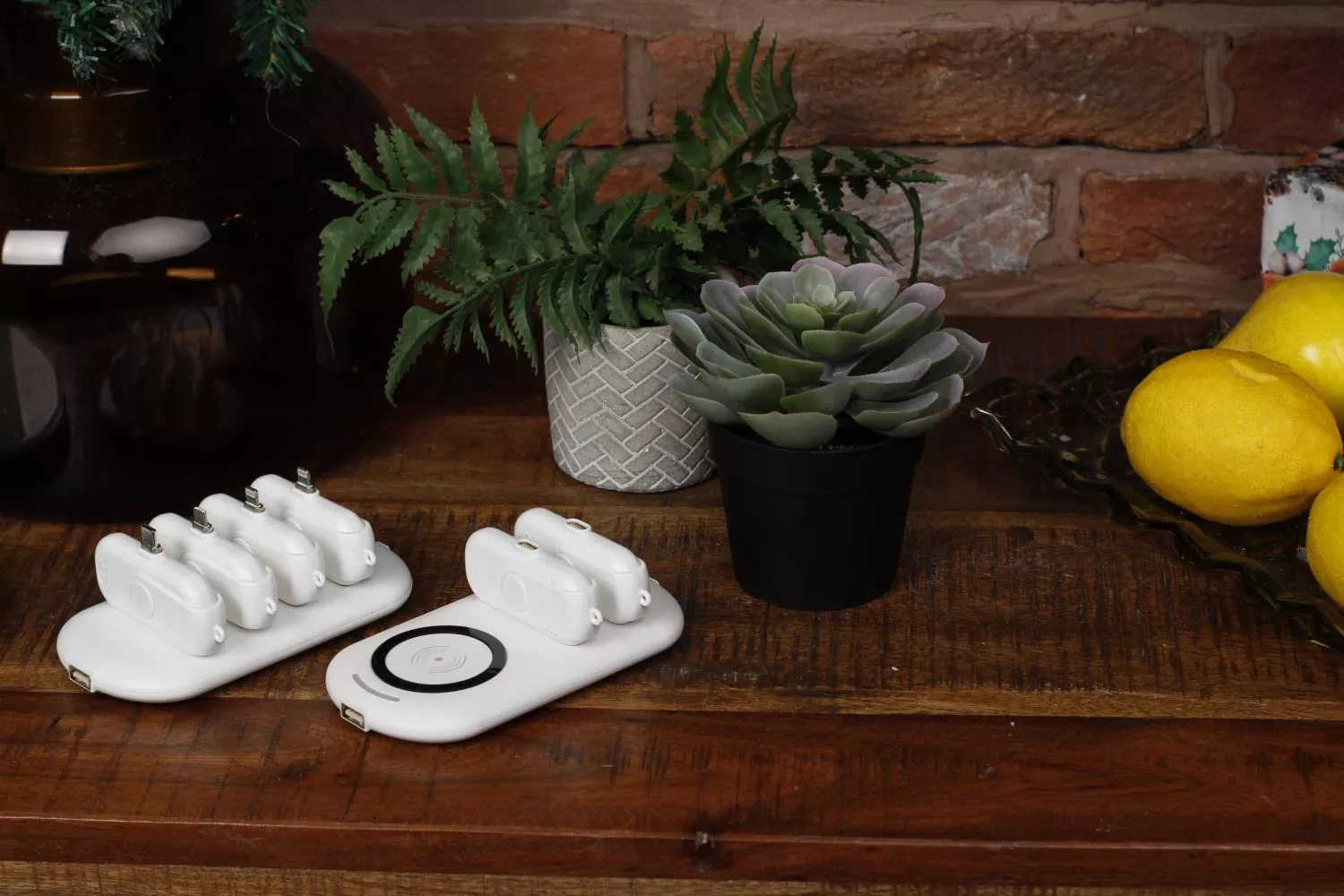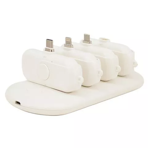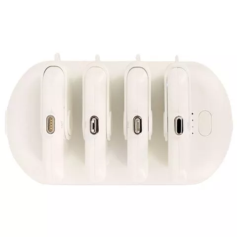 Портативные аккумуляторы имеют 3 съемных разъема: Micro USB, Lightning, Type-C. Их можно открепить от основания и зарядить ими смартфон.