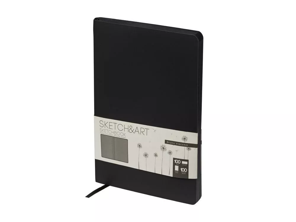 Скетчбук SKETCH&ART на 100 листов в книжном переплете от Bruno Visconti – это функциональный блокнот для зарисовок. Гибкая обложка из искусственной кожи с великолепным качеством отделки и скругленными углами – образец стиля и элегантности, комфорта и практичности. Скетчбук сохраняет первоначальный внешний вид даже при активном использовании и дарит приятные тактильные ощущения благодаря бархатистому покрытию Soft Touch. Формат А5 позволяет брать скетчбук в дорогу, он легко помещается в дамскую сумочку, а значит всегда будет у вас под рукой. Листы блока плотностью 100 г/кв.м черного цвета - приятный и выгодный фон для создания эскизов и зарисовок цветными и чернографитными карандашами, ручками, линерами. Художественно оформленные форзац и нахзац с выделенным полем для персональных данных - дополнительное преимущество скетчбука. Тиснение (Блинт) на данный товар осуществляется бесплатно. Оплачивается только настройка оборудования в размере 6200 рублей на весь тираж.
