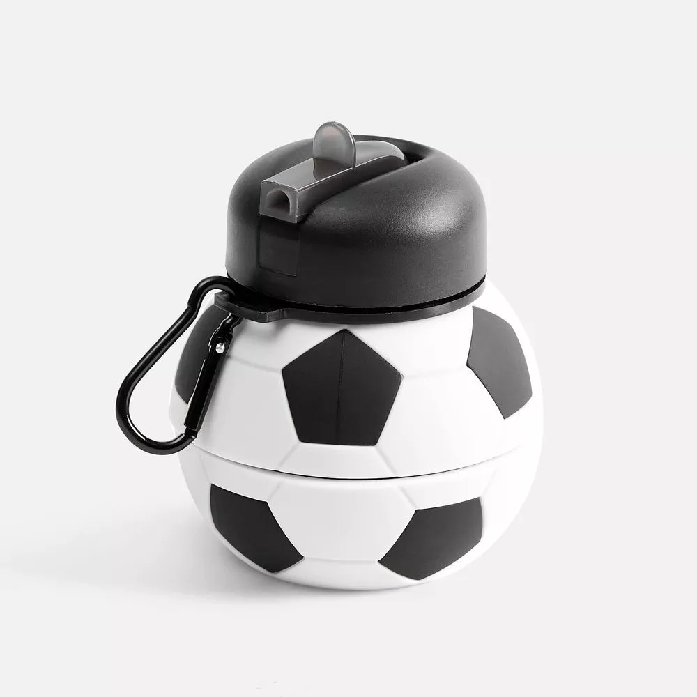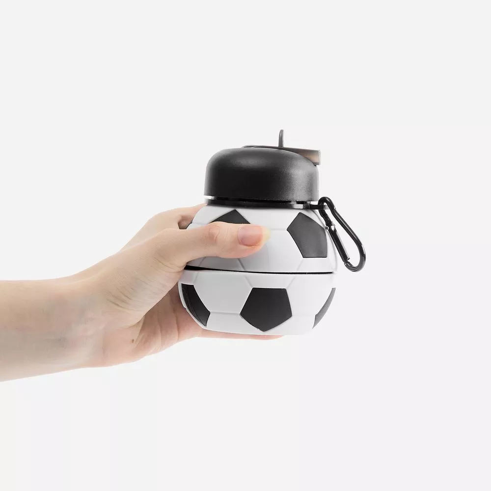 Оригинальная складная бутылка Football Flex будет отличным подарком для футболистов и всех любителей футбола. Она также понравится людям, ведущим активный образ жизни, спортсменам, школьникам и студентам, любителям туризма и походов. Бутылку легко закрепить карабином на рюкзак или сумку и взять на тренировку, в школу, спортзал или на море! При складывании высота уменьшается вдвое. Подходит для холодных и горячих напитков.