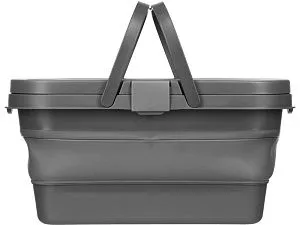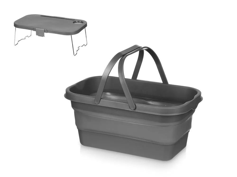 Крышка этой корзинки для пикника превращается в удобный столик буквально по щелчку пальцев: для этого нужно просто снять ее и разложить металлические ножки. На этом магия корзинки не заканчивается — силиконовый корпус складывается, что очень удобно, когда пикник закончен, и все содержимое съедено. Корзинку легко мыть, удобно переносить, занимает мало места в сложенном виде. - ниша для стакана и приборов на крышке-столике - идеально для пикников - удобные ручки для переноски - вместительная в разложенном виде, экономит место при хранении