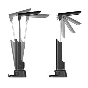 Благодаря подставке лампу удобно установить на горизонтальной поверхности, предусмотрен фиксатор для смартфона. 3 положения основания позволяют задать желаемый наклон экрана и использовать смартфон как в горизонтальном так и в вертикальном положении. Телескопические направляющие увеличивают высоту лампы на 10 см, регулировка наклона до 90º для настройки светового потока.