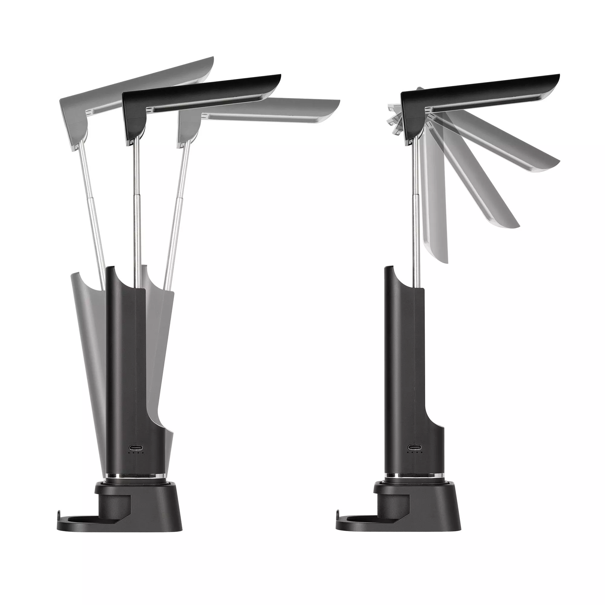 Благодаря подставке лампу удобно установить на горизонтальной поверхности, предусмотрен фиксатор для смартфона. 3 положения основания позволяют задать желаемый наклон экрана и использовать смартфон как в горизонтальном так и в вертикальном положении. Телескопические направляющие увеличивают высоту лампы на 10 см, регулировка наклона до 90º для настройки светового потока.