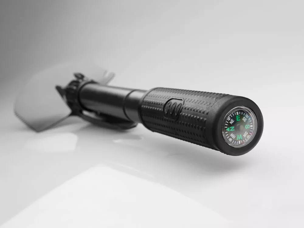 Металлическая складная лопата с компасом и резиновой рукояткой, практичная и компактная. Поставляется в сумке 600D.В сложенном виде: 160 x 100 мм | В развернутом виде: 420 x 100 мм. Гравировка (оптоволоконный лазер) (Без чернения) на данный товар осуществляется бесплатно. Оплачивается только настройка оборудования в размере 1000 рублей на весь тираж.