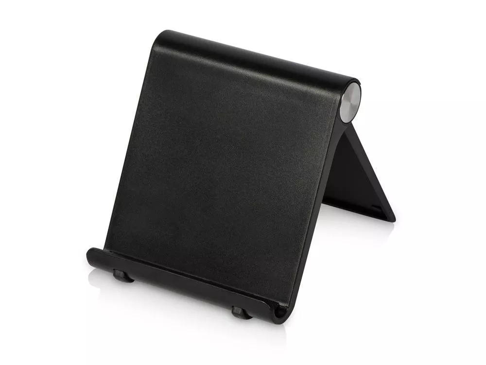 Подставка выполнена из прочного ABS пластика и имеет 6 регулируемых позиций. Имеет значительную площадь для нанесения логотипа спереди и сзади (тампопечать и цифровая печать). На подставке можно расположить смартфон любой диагонали как горизонтально, так и вертикально. Поставляется в картонной коробочке. Тампопечать (1 цвет (цветные изделия)) на данный товар осуществляется бесплатно. Оплачивается только настройка оборудования в размере 4000 рублей на весь тираж.