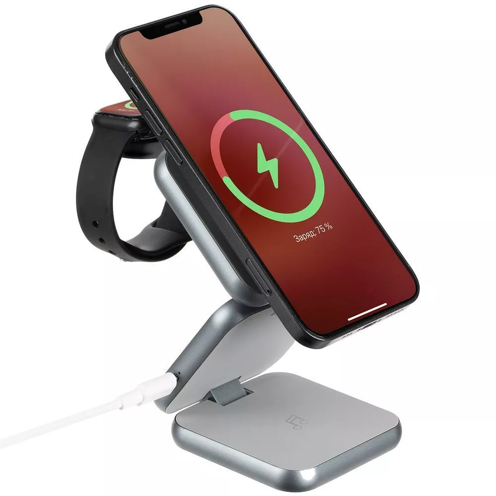 Зарядная станция совместима со всеми смартфонами, поддерживающими технологию беспроводной зарядки Qi. Также предусмотрено место для зарядки часов Apple Watch и наушников. Зарядка начнется автоматически при размещении устройств на индукционной площадке.