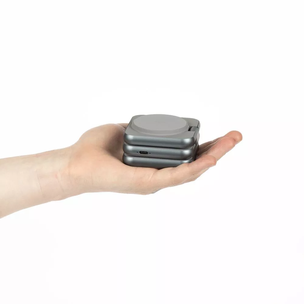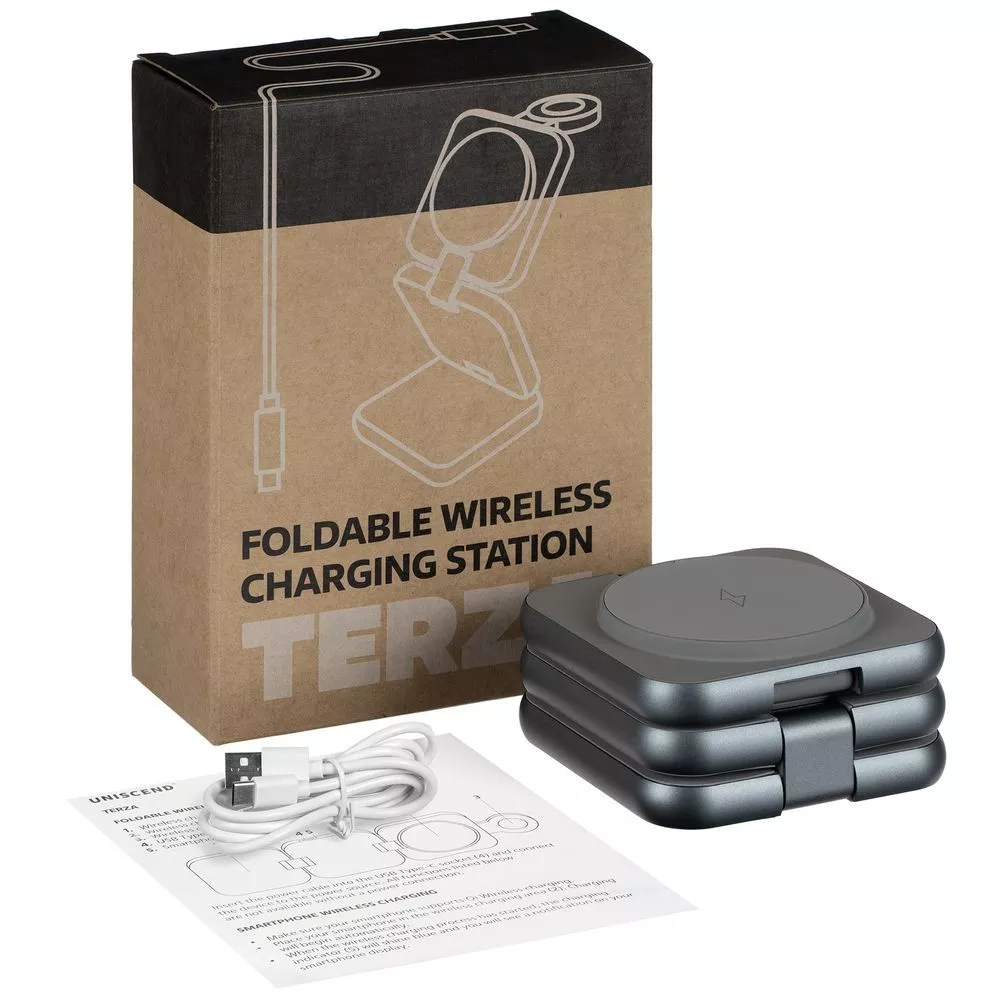 Terza — компактное устройство беспроводной зарядки, которое удобно использовать и в офисе, и в дороге, так как станция аккуратно складывается в стильный куб. Благодаря продуманной конструкции пластины можно зафиксировать в любом положении, в том числе свернуть из них удобную подставку для телефона.