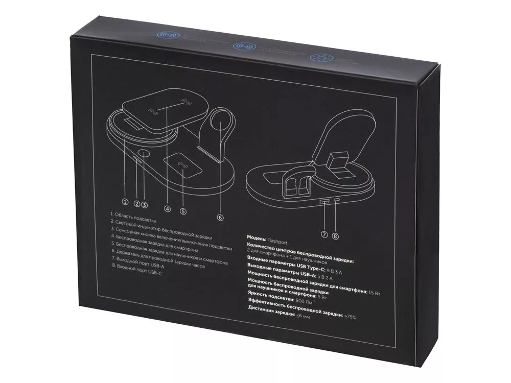 Складная зарядная станция с беспроводной зарядкой Flashport, 15 Вт